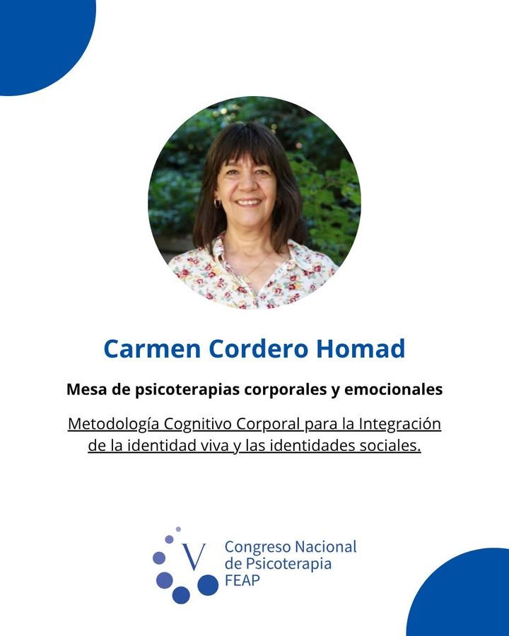 📢 Carmen Cordero Homad será ponente en la mesa de psicoterapias corporales y emocionales con la ponencia "Metodología Cognitivo Corporal para la Integración de la identidad viva y las identidades sociales" Esta mesa tendrá lugar en nuestro V Congreso Nacional de Psicoterapia. 📍 Zaragoza del 13 al 15 de noviembre de 2025. Puedes inscribirte a nuestro congreso en este enlace: 💁‍♂️ https://feapzaragoza.com/inscripciones/ ℹ️ Más información sobre Carmen: https://feapzaragoza.com/personas/carmen-cordero-homad/ #congreso #congresofeap #congresopsicoterapia #saludmental #mesas #psicoterapias #corporalyemocional